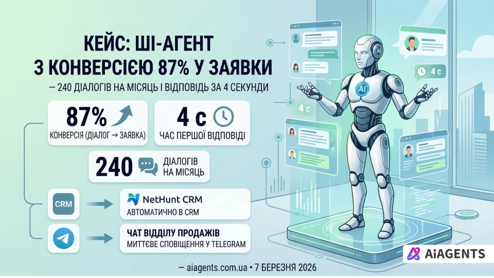 Кейс: ШІ-агент з конверсією 87% у заявки — 240 діалогів на місяць і відповідь за 4 секунди